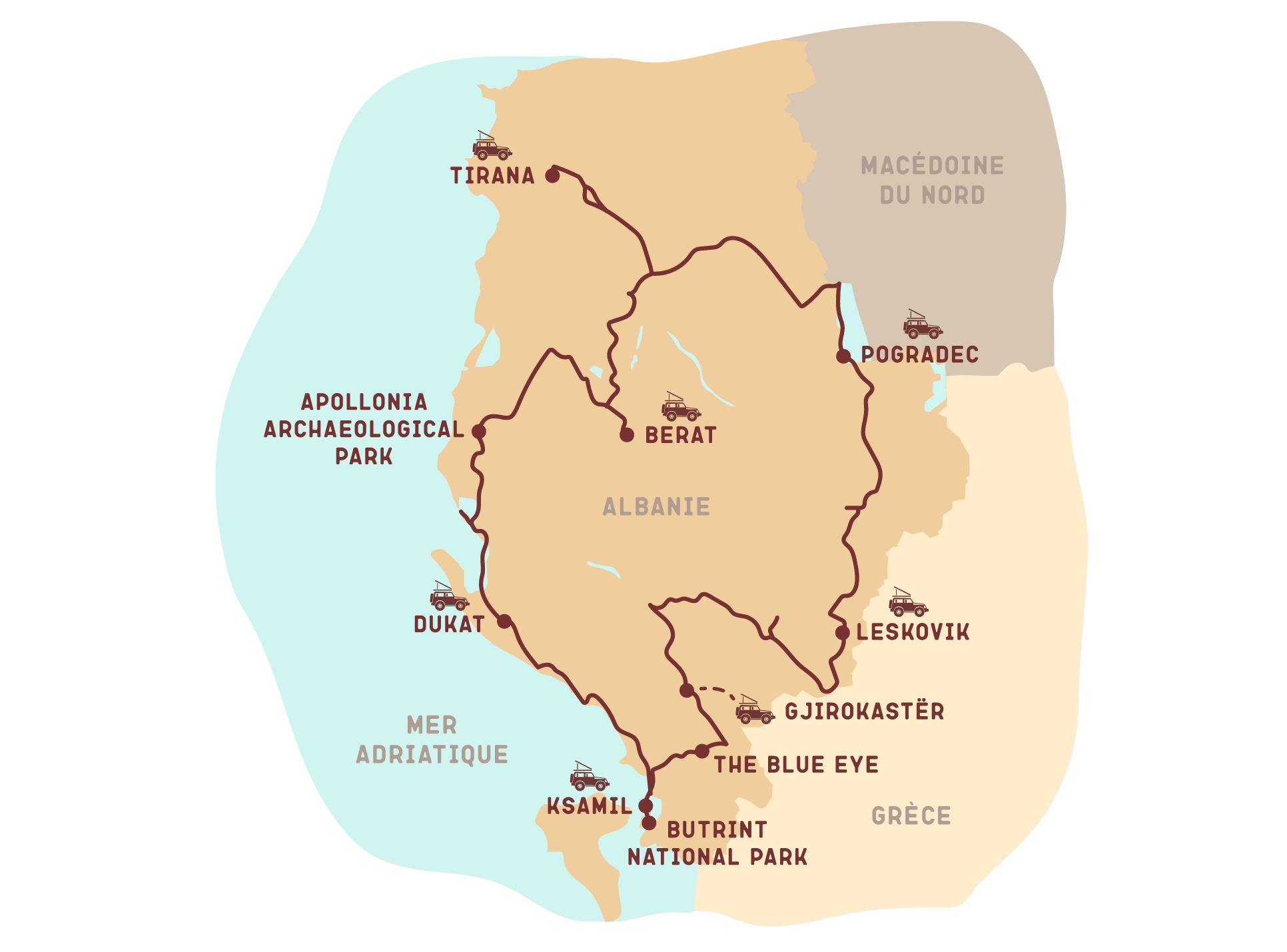 Conçu entièrement par nos soins, notre road trip en Albanie reste accessible, authentique et abordable. Et parce qu’on tient à préserver ce pays qu’on aime tant, on travaille main dans la main avec des partenaires locaux pour un tourisme plus durable.
