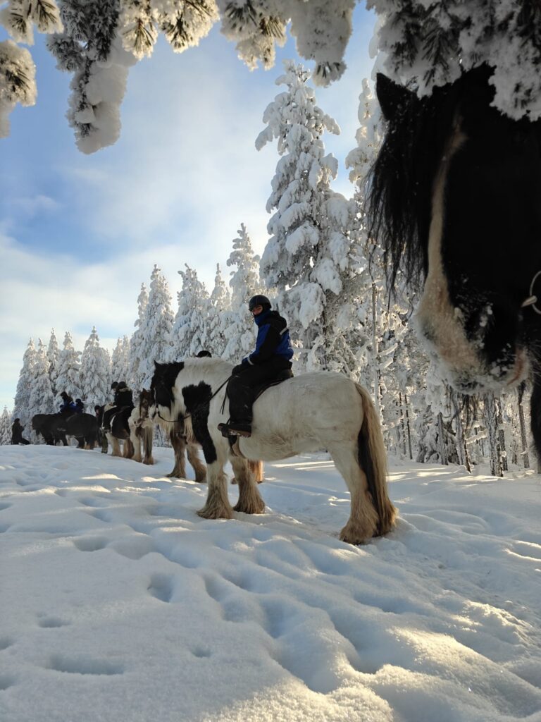 - Randonnée en raquettes – Découvrez les merveilles hivernales de la Laponie avec une randonnée guidée en raquettes à travers des forêts enchantées et le long de lacs gelés. Pendant la randonnée, le guide partage des histoires fascinantes sur la flore et la faune locales.